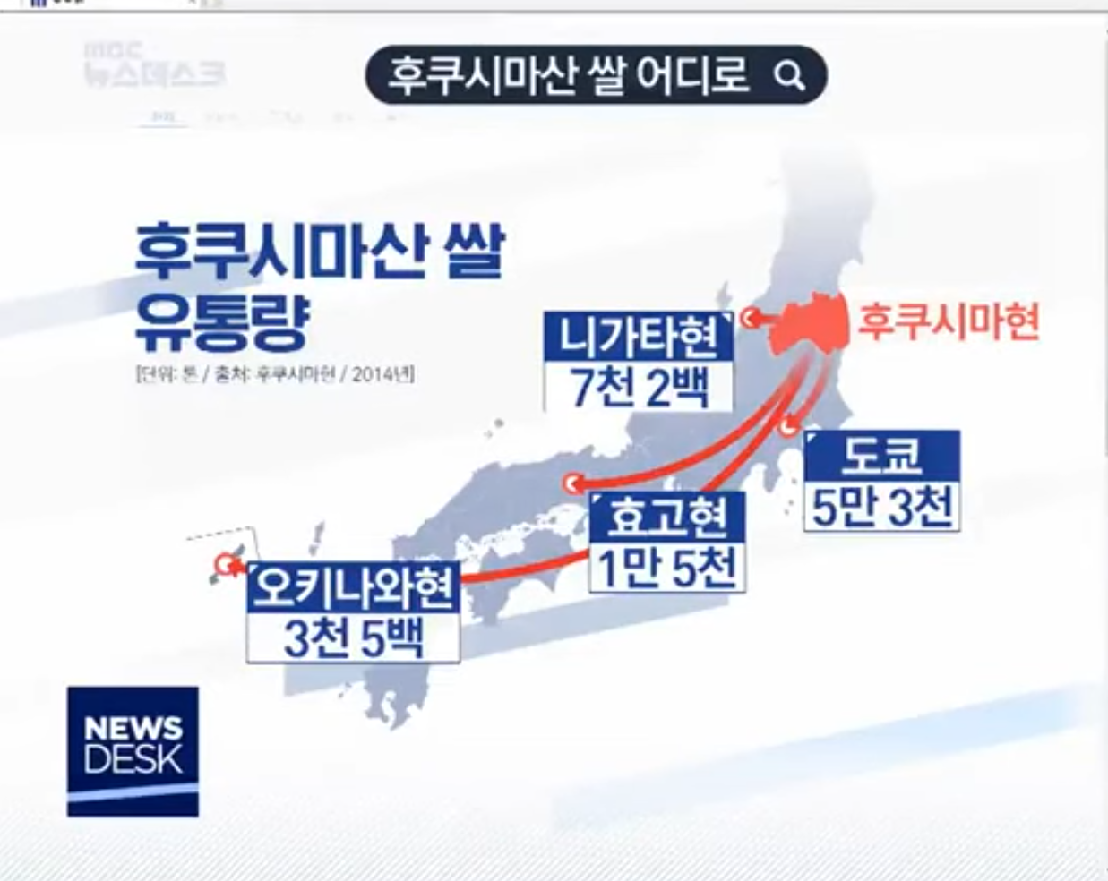 특히 후쿠시마산 쌀은 일본 내 편의점의 삼각김밥 도시락에 대량 사용되고 있는 것으로 방송되었다.