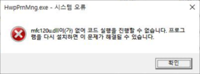 'mfc120u.dll이 없어 코드 실행을 진행할 수 없습니다. 프로그램을 다시 설치하면 이 문제가 해결될 수 있습니다.'