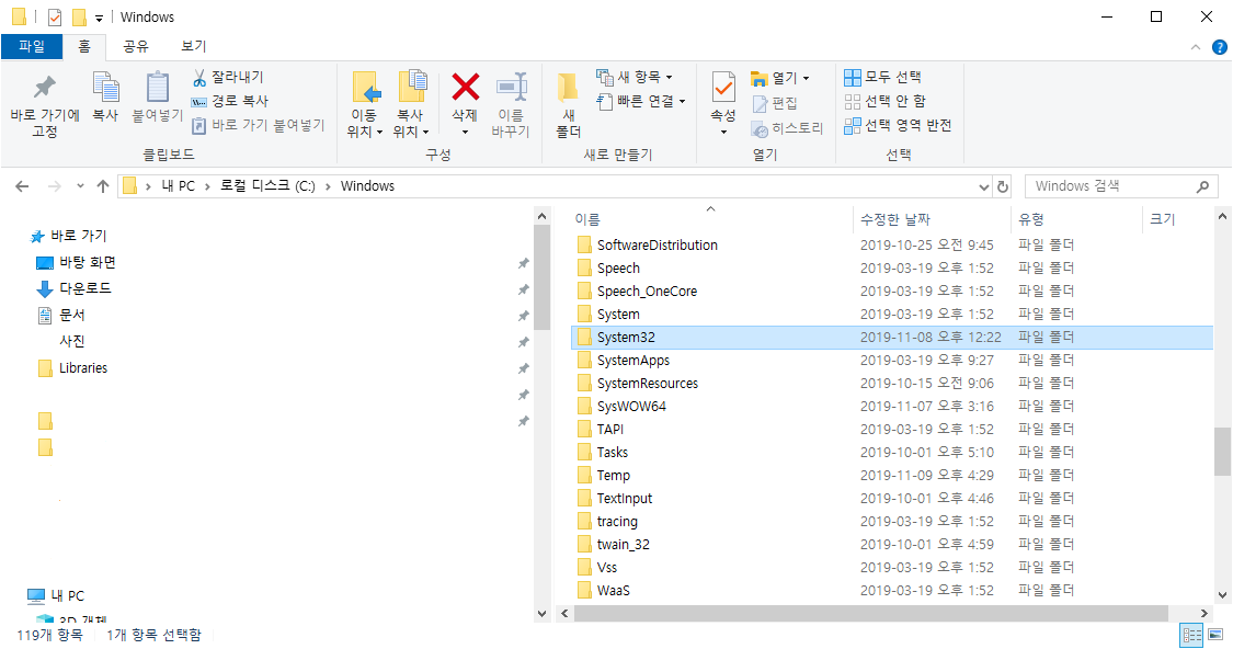 내컴퓨터에서 윈도우가 설치된 드라이브와 경로를 찾습니다.