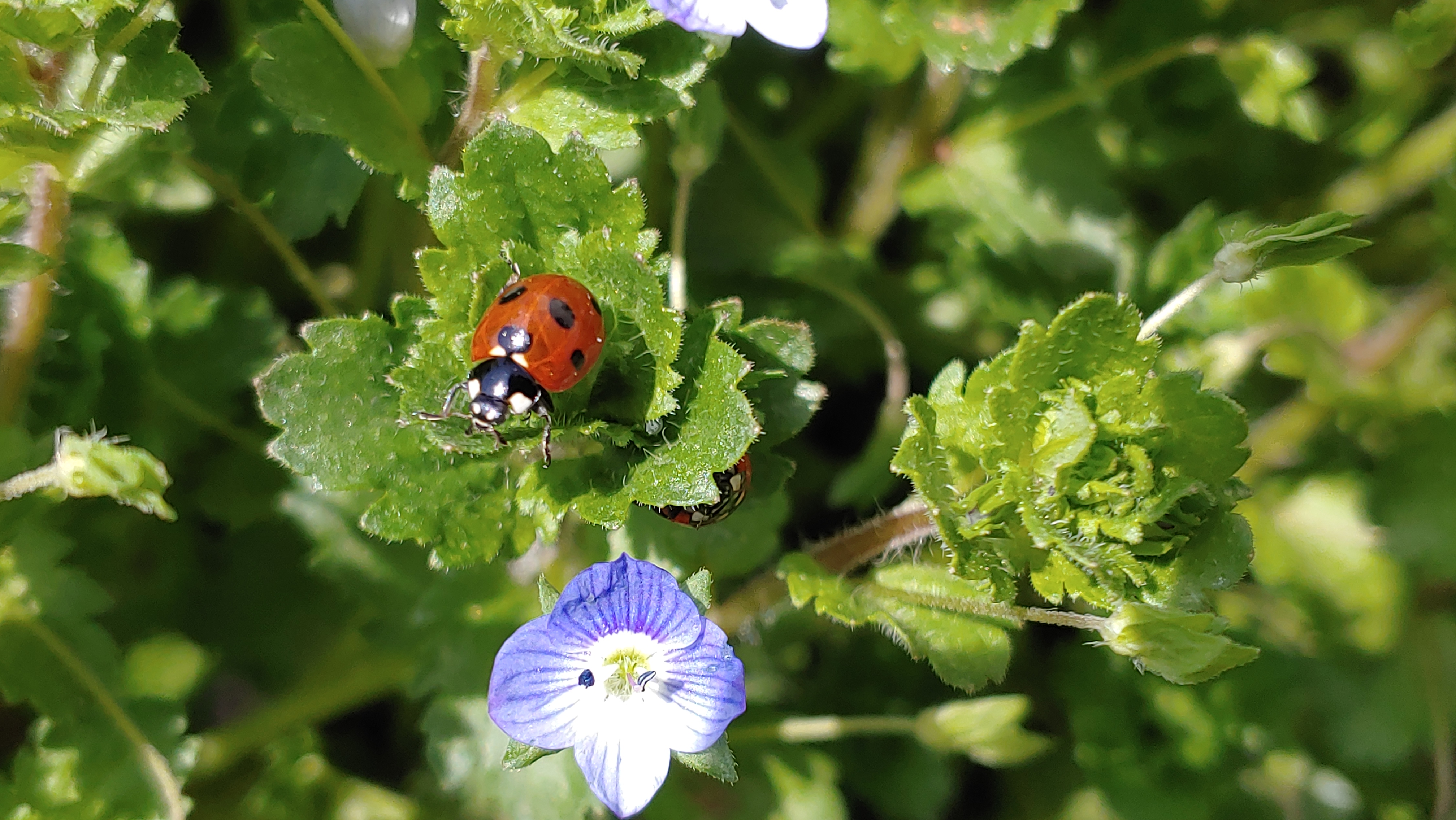 무당벌레도 꽃잎들 사이를 바지런히 누빈다.