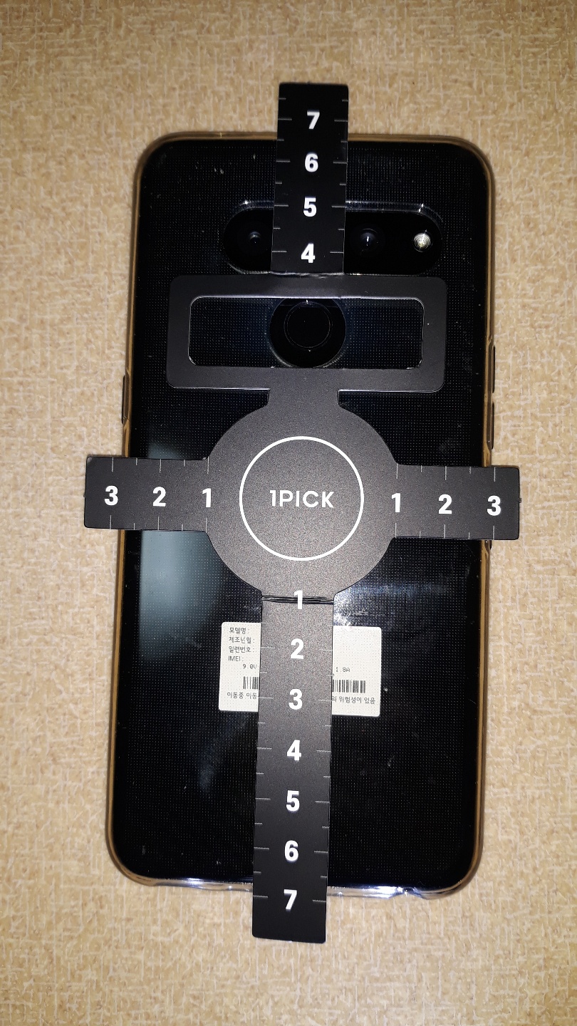지문형 스마트폰에 맞는 부착 위치 안내나 플레이트 부착용 가이드 제공이 뒤늦게 이루어진 탓에, 정확한 정보가 없어 나름 검색도 하고 고민하여 위치를 선정하여 붙인 곳이 지문인식부 바로 아래였습니다.
