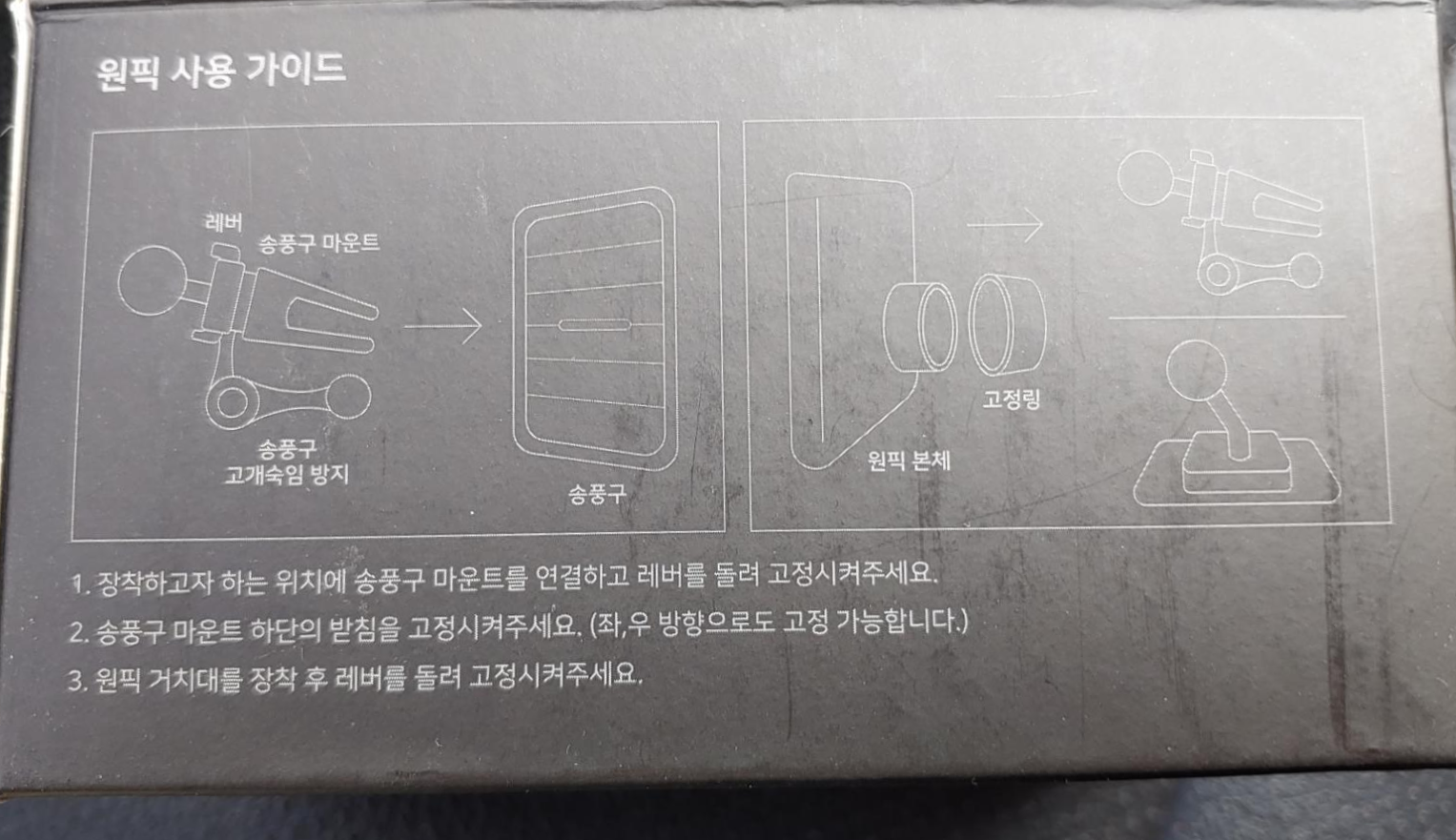 제품 박스 사용 가이드에는 '송풍구 마운트'라고 안내되어 있습니다.
