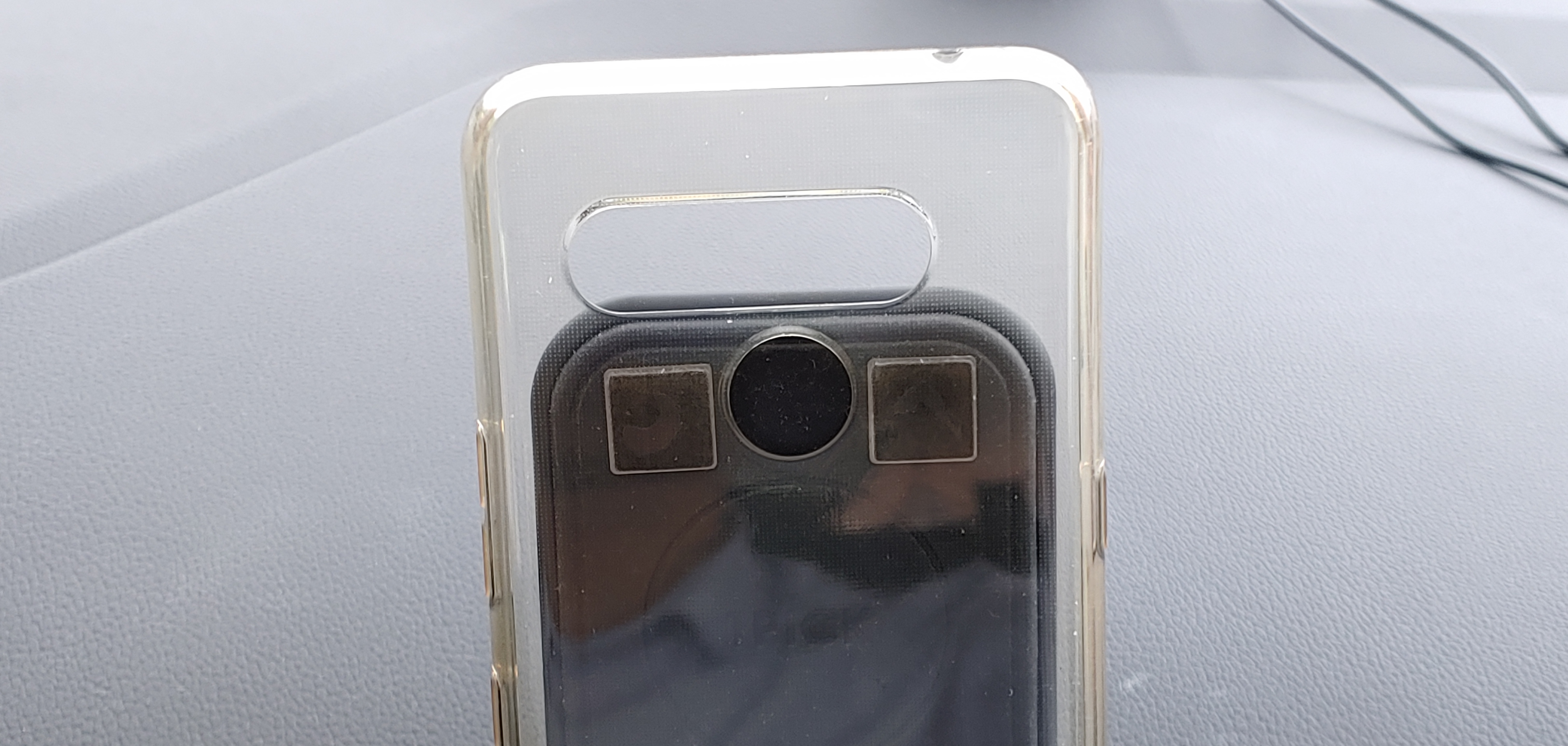 카메라가 없어 스마트폰을 빼내어 젤리케이스만 거치하고 촬영한 모습입니다.