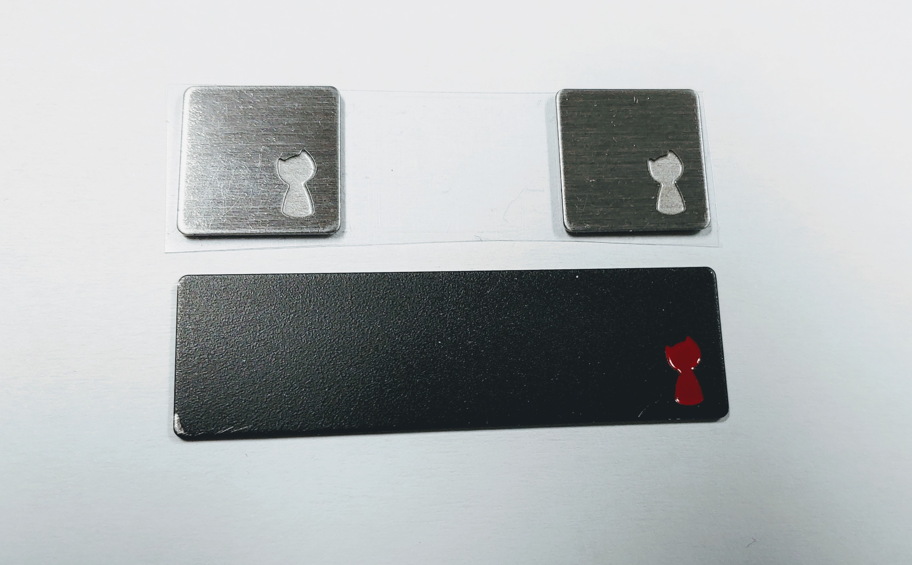 플레이트는 전체 검정색에 오른쪽 아래 귀퉁이에 고양이 모양을 음각하고 빨간색으로 칠하여 포인트를 준 디자인입니다.