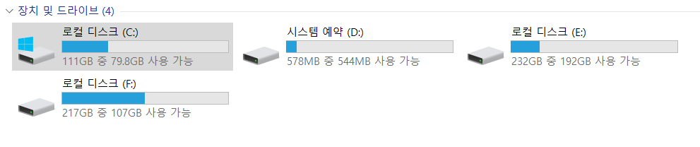 초기화를 하였기 때문에 일반적인 저장장치 표시 형식을 따라 표시가 됨을 확인할 수 있습니다.