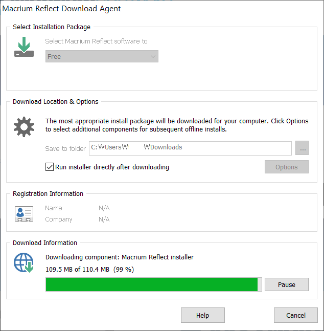 매크리엄 리플렉트 설치 관리자 프로그램을 실행하면 본 프로그램이 다운로드됩니다.