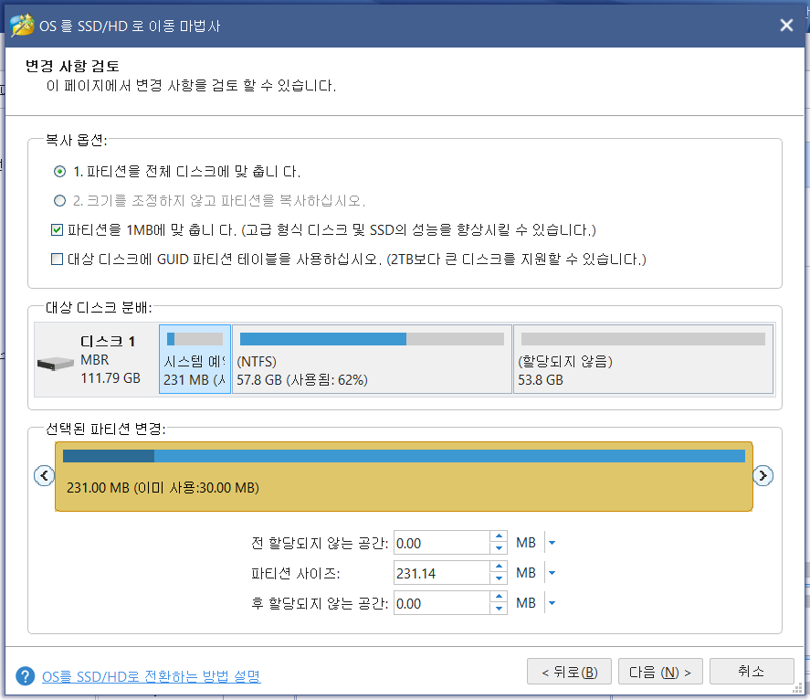 그래서 하드를 통째로 마이그레이션 하려고 계획했었는데요.