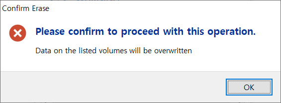 모든 드라이브들의 데이터를 덮어쓰게 되니 확인하고 또 확인하는 절차를 밟고 있습니다.