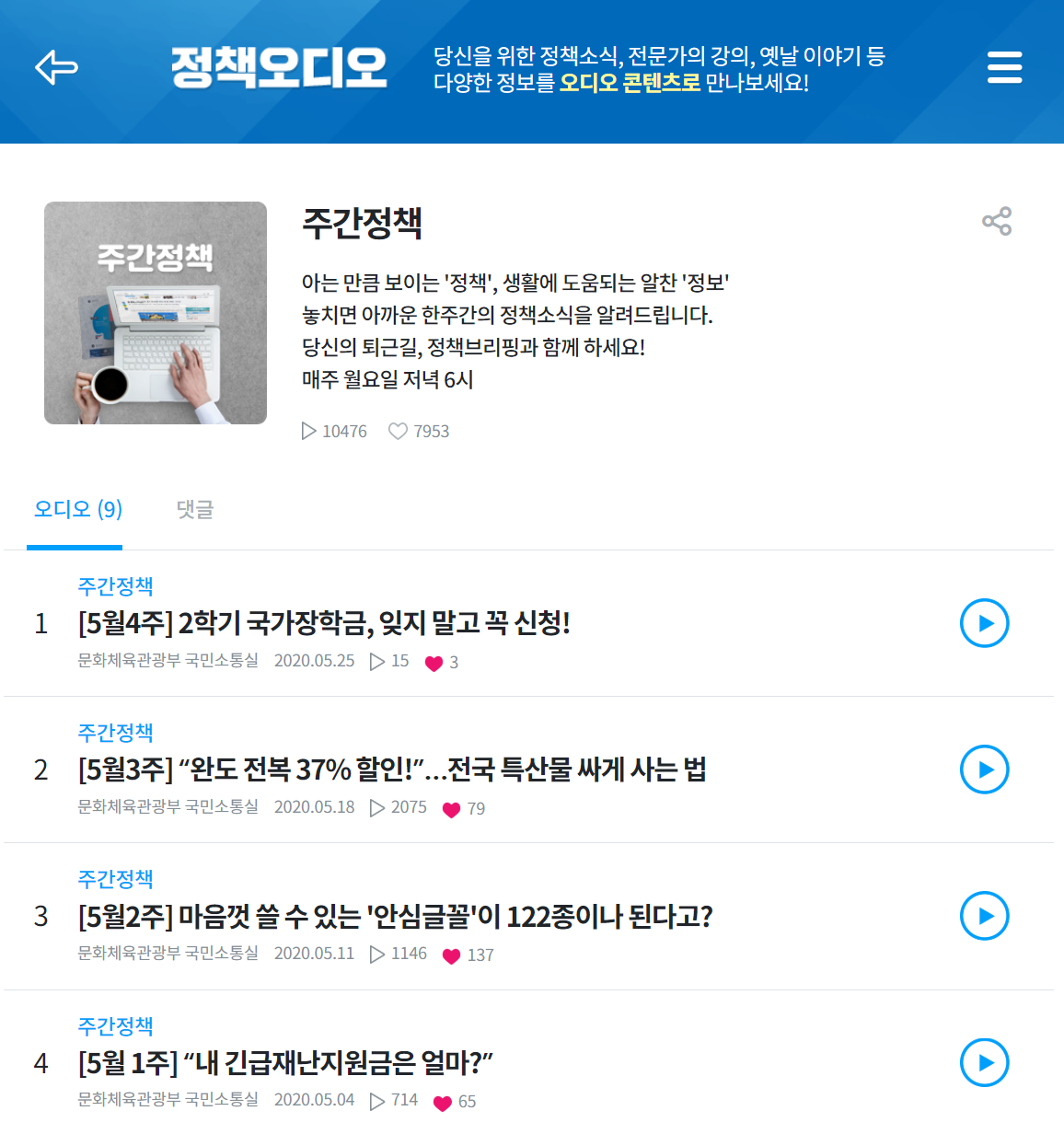 | 대한민국 정책포털 정책오디오를 듣다. (24) | 2020.04.23 |