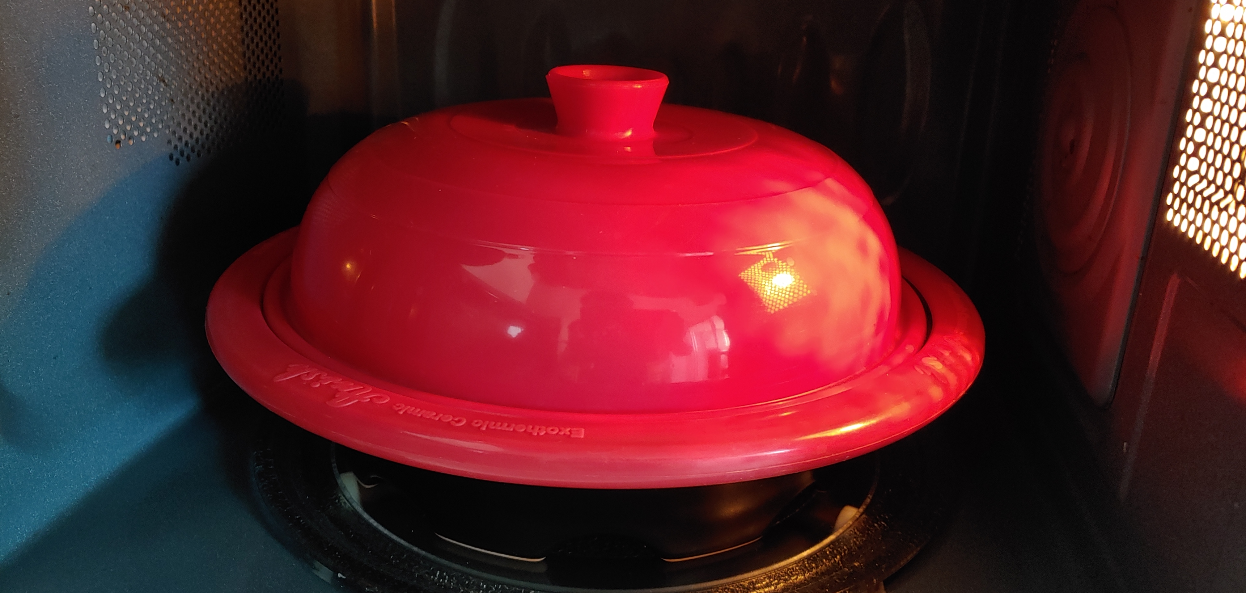 애니쉬 용기로 8분 조리를 마친 후 전자레인지를 열었습니다.