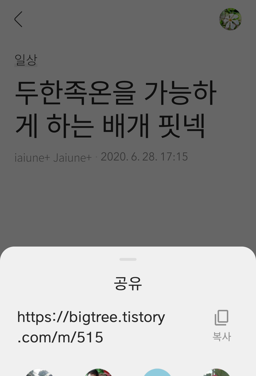공개발행이 되지 않는 글도 공유하기 시도는 가능한 점을 활용하였습니다.