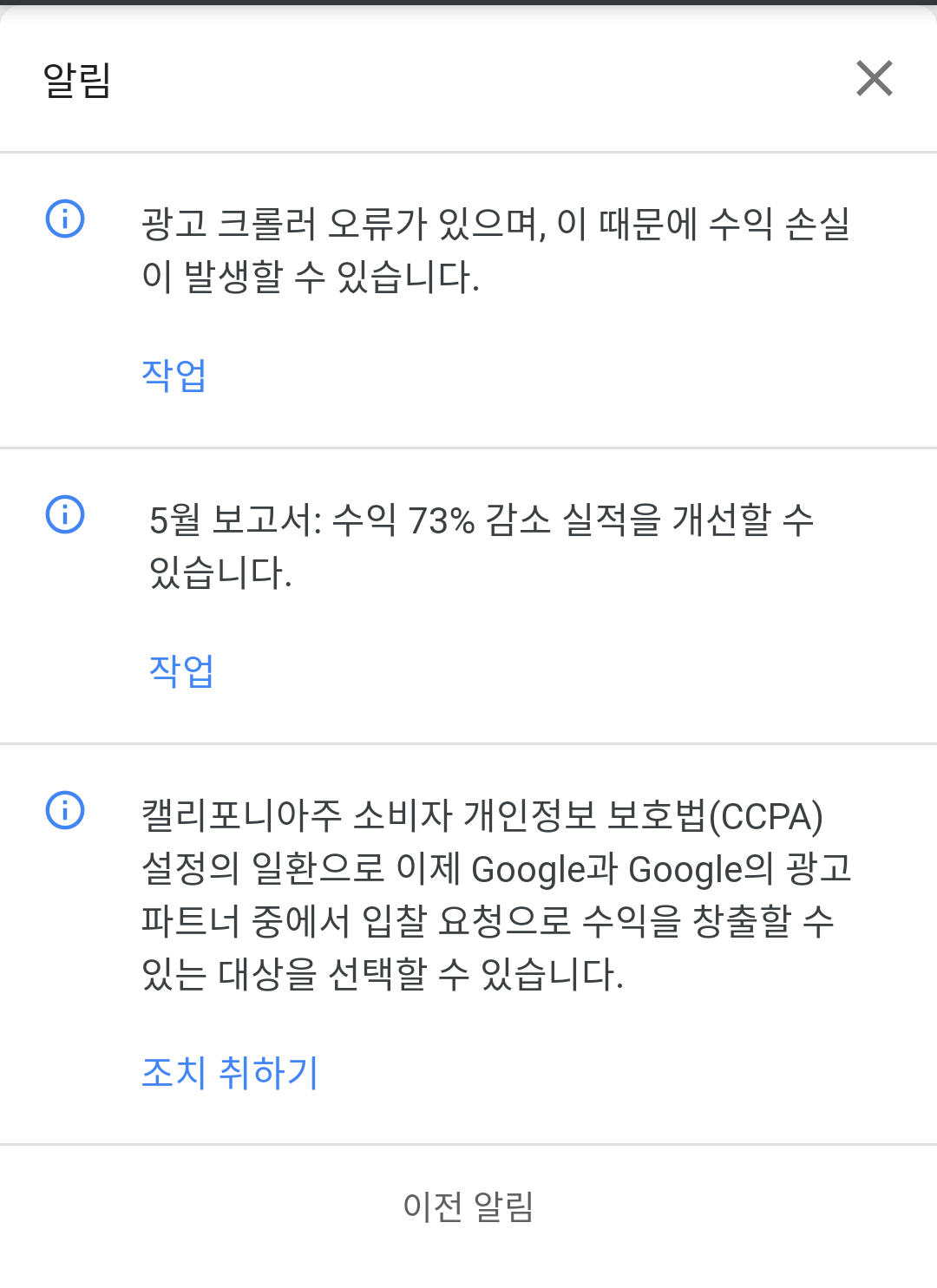광고 크롤러 오류가 있다는 메시지가 가끔 보입니다.