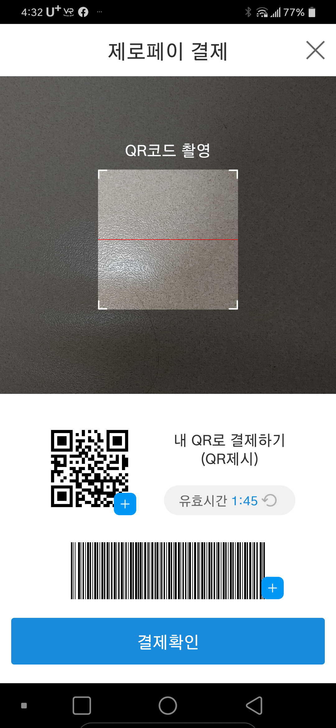 권한 허용을 하고 나면 제로페이로 결제할 수 있는 준비가 됩니다.