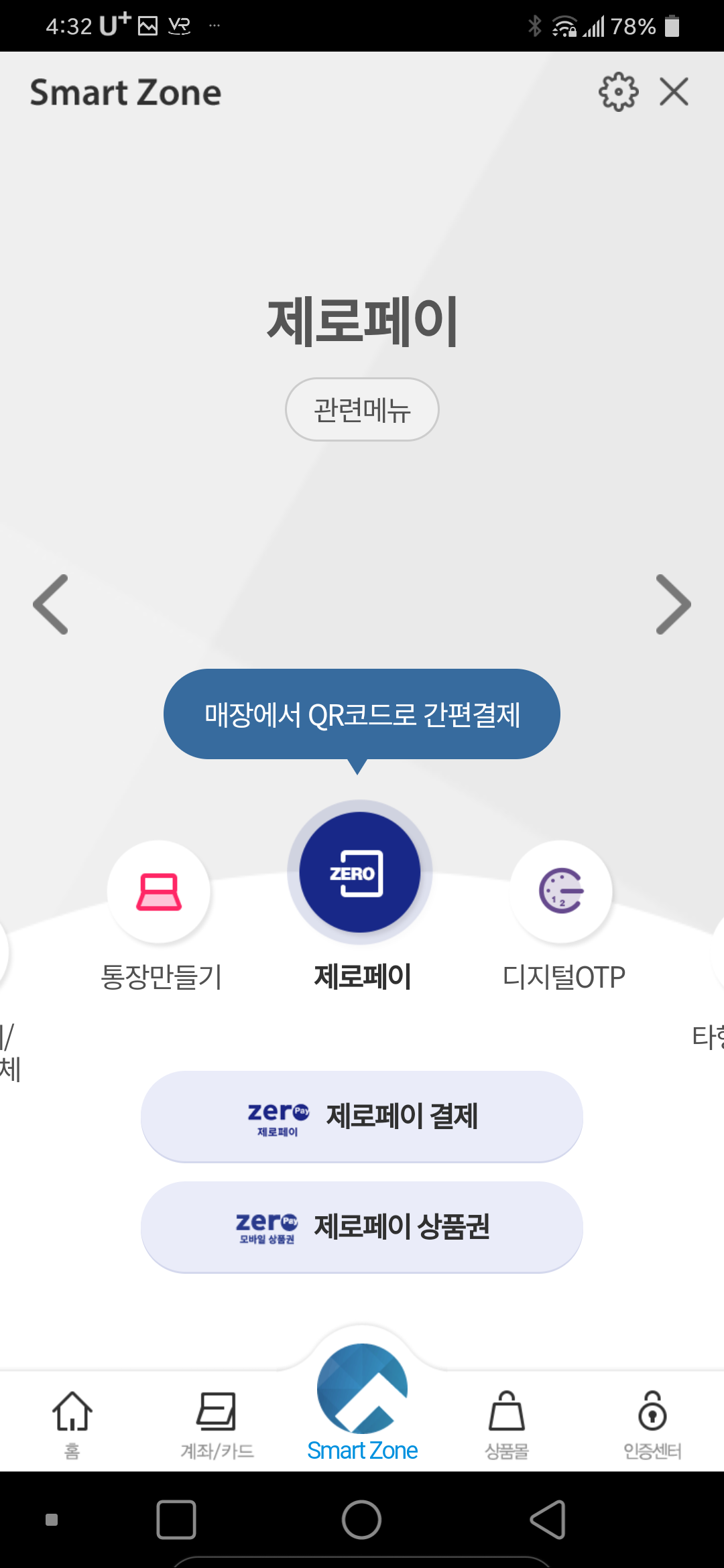 스마트폰에 은행앱을 사용할 일이 있어 일을 마치고 만지작 거리던 중에 평소에 관심을 가졌던 '제로페이'가 눈에 띄어 가입하게 되었습니다.