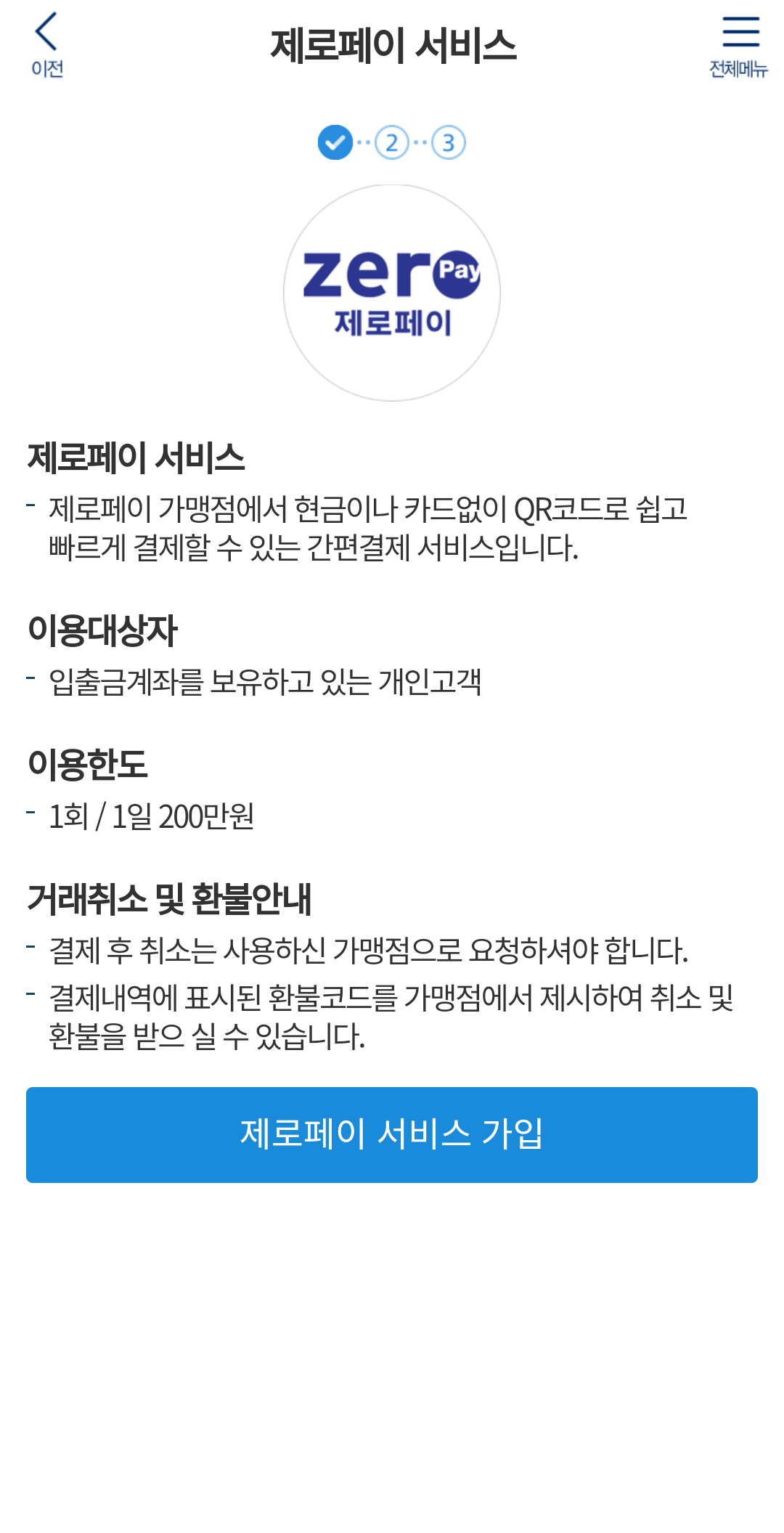주거래 은행앱을 통해 제로페이에 가입을 하게 되었습니다.