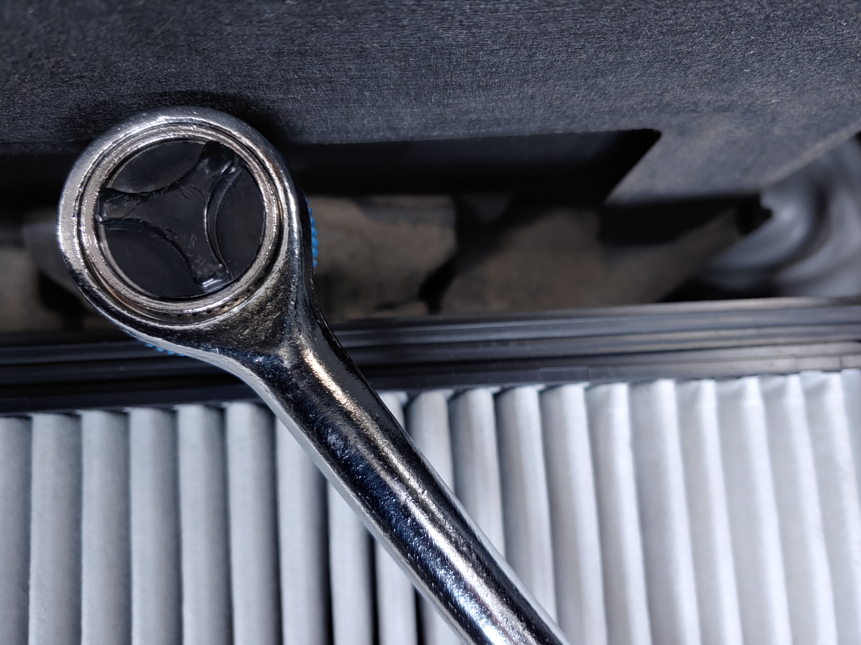 이전 차량과 다르게 좁은 틈바구니 아래에 너트가 조여져 있는데, 풀만한 긴 연장이 없어 난감한 상황에 봉착하였습니다.