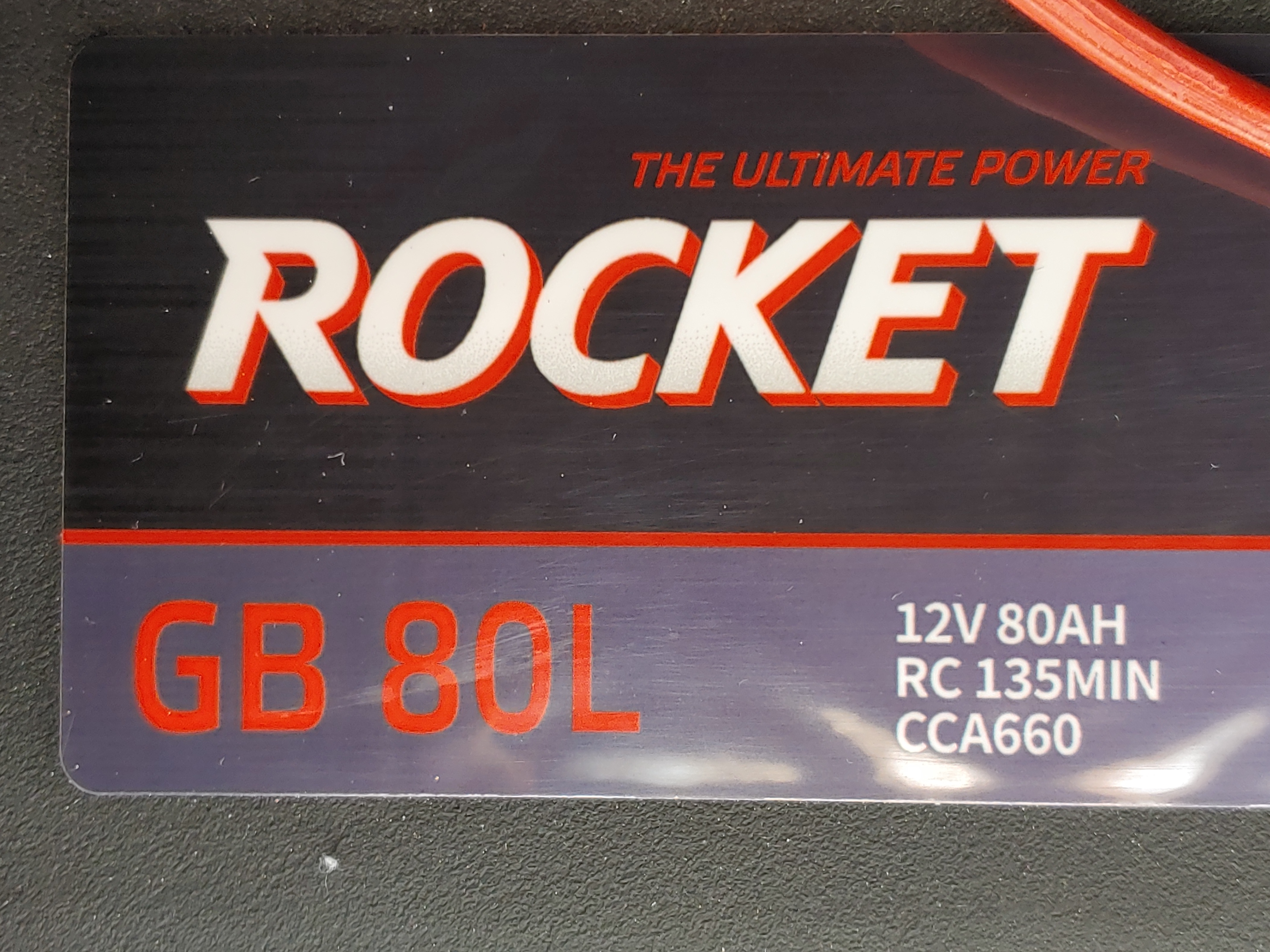 | GB 80L : 모델명(+배터리 용량) 12V 80AH : 전압의 세기(12볼트)와 배터리 용량 표시로 4A(Ampere; 암페어)로 20시간(Hour; 아워) 동안 연속하여 작동할 수 있는 용량을 나타냄 RC 135MIN : RC(Reserve Capacity) 예비용량은 만충전 시 25A(암페어) 전류로 135분 동안 작동할 수 있다는 표시. CCA : 추위와 관련한 배터리 성능(Cold Cranking Amperes)으로 저온 시동성을 나타냄 |