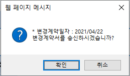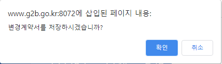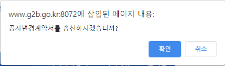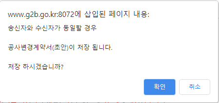 공사변경요청작성 메뉴에서 이전 계약 내용을 불러와 수정한 후 저장하면 나타나는 팝업창입니다.