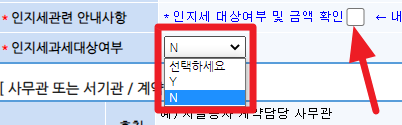*인지세 대상여부 및 금액 확인 네모 칸에 체크 표시해줍니다.