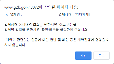 업체의 상태를 확인해야하는 어떤 문제가 발생하였음을 나라장터 시스템이 알려줍니다.