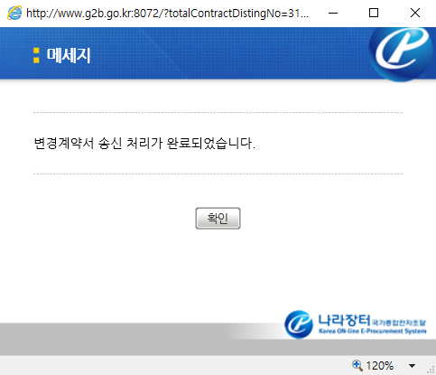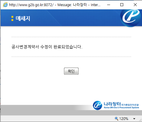 '공사변경계약서 전자문서가 송신되었습니다.' 라는 메세지 창이 반갑기만 합니다.