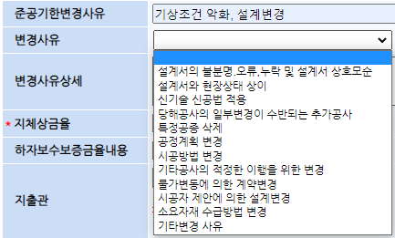 준공기한변경사유는 현장에 적당한 내용을 포괄적으로 요약 기록하면 됩니다.