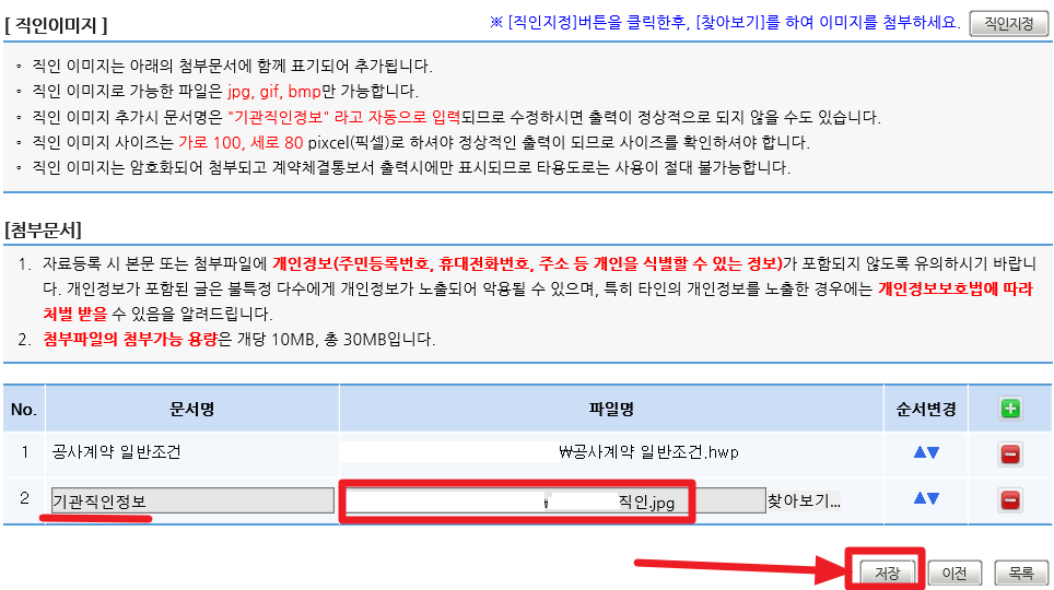 안내에 직인이미지로 가능한 확장자에 해당하지 않아 저장까지는 진행하지 않았습니다.