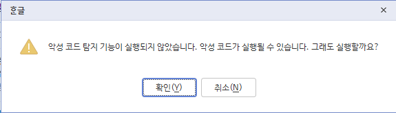 위의 단계에서 확인을 선택하면 Hwp.exe 파일이 실행되면 한글문서 프로그램이 열립니다.