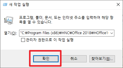 한컴오피스 프로그램 중 한글문서 작성 프로그램의 실행이 필요하기 때문에 한글 프로그램이 설치된 폴더로 접근하면 됩니다.
