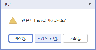 저장하지 않으면 작업했던 내용이 사라진다는 친절한 설명도 보여줍니다.