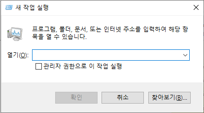 새 작업 실행 창에서 아래의 '찾아보기' 메뉴를 선택하여 실행이 필요한 프로그램의 실행파일이 있는 경로를 찾아 들어갑니다.