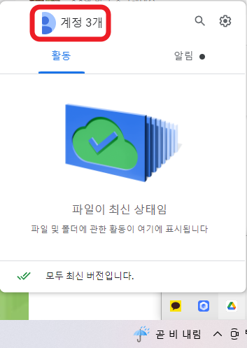 구글 드라이브 아이콘을 마우스 왼쪽이나 오른쪽 클릭해보면 계정이 기존 2개에서 3개로 1개가 추가되었음을 확인할 수 있습니다.