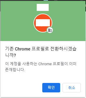 기존 크롬 프로필을 사용한 적이 있기 때문에 확인을 클릭하면 사용했던 프로필로 전환은 이루어집니다.
