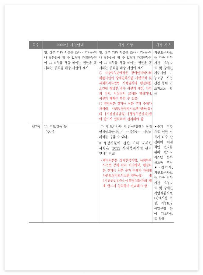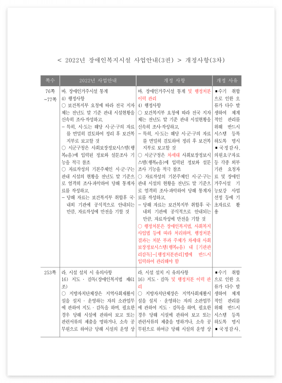 < 2022년 장애인복지시설 사업안내(3권) > 개정사항(3차)