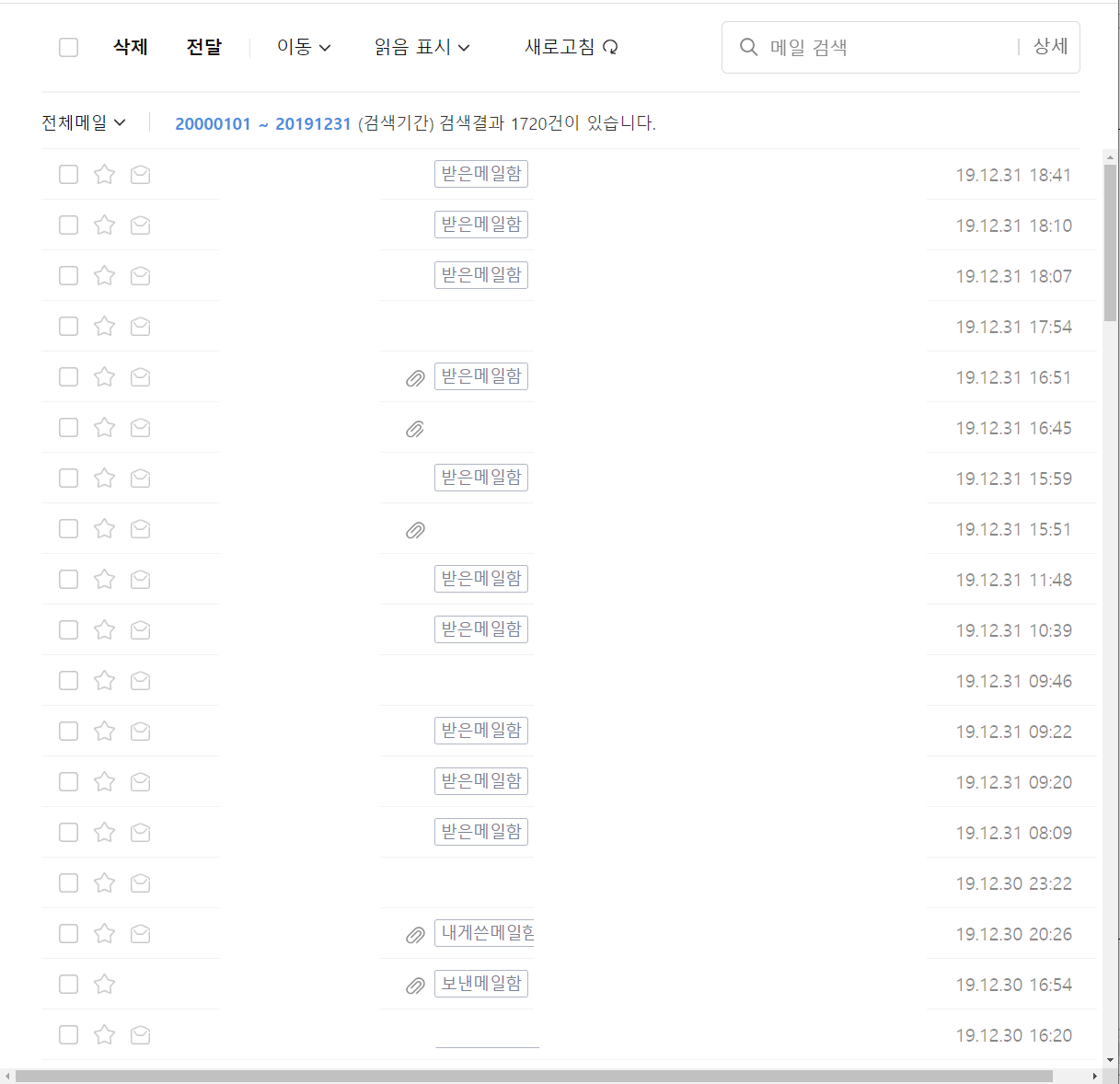 그럼 지난 이메일함을 비워보도록 하겠습니다.