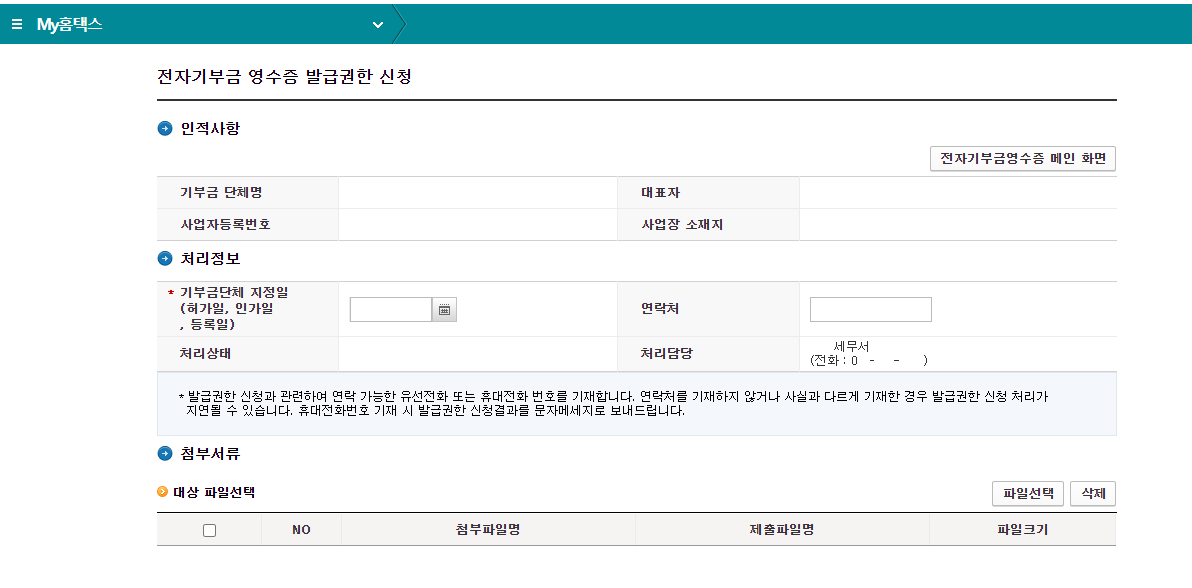 전자기부금영수증 발급 권한 신청도 하나의 민원신청입니다.