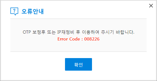 'OTP 보정후 또는 IP재정비 후 이용하여 주시기 바랍니다.'