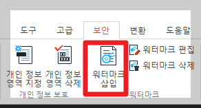보안 메뉴의 하위 메뉴 중에 워터마크 삽입을 선택합니다.