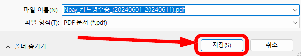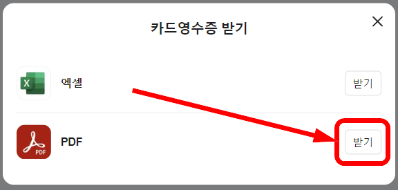 지출결의서 등의 지출증빙 자료로 사용하려면 PDF 옆에 있는 받기를 선택합니다.