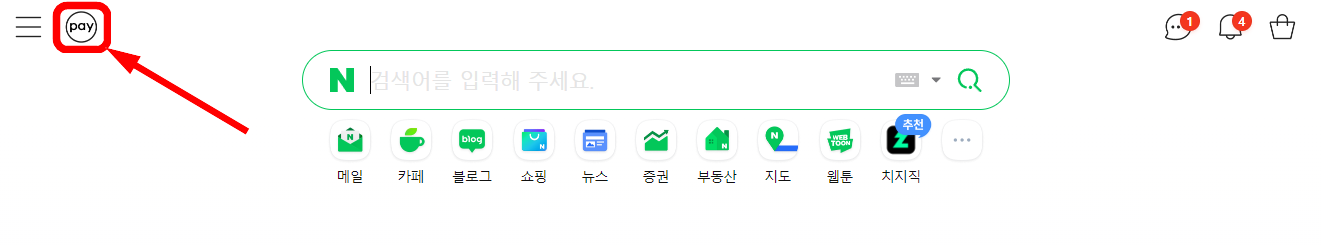 화면 위 왼쪽 삼선 옆 pay( 페이) 아이콘을 선택합니다.