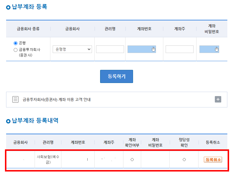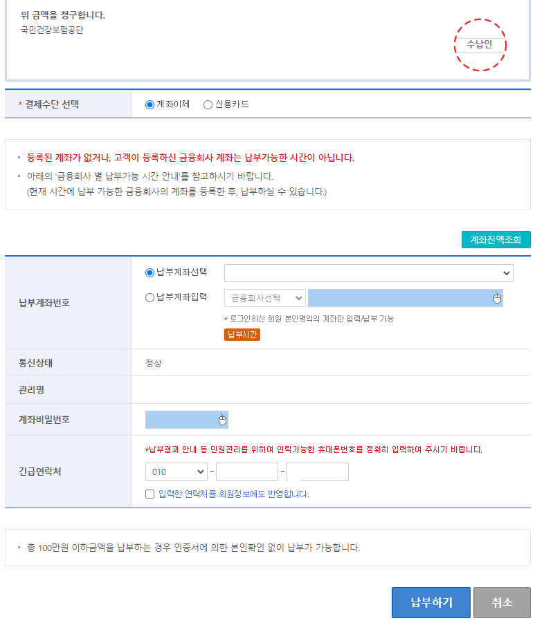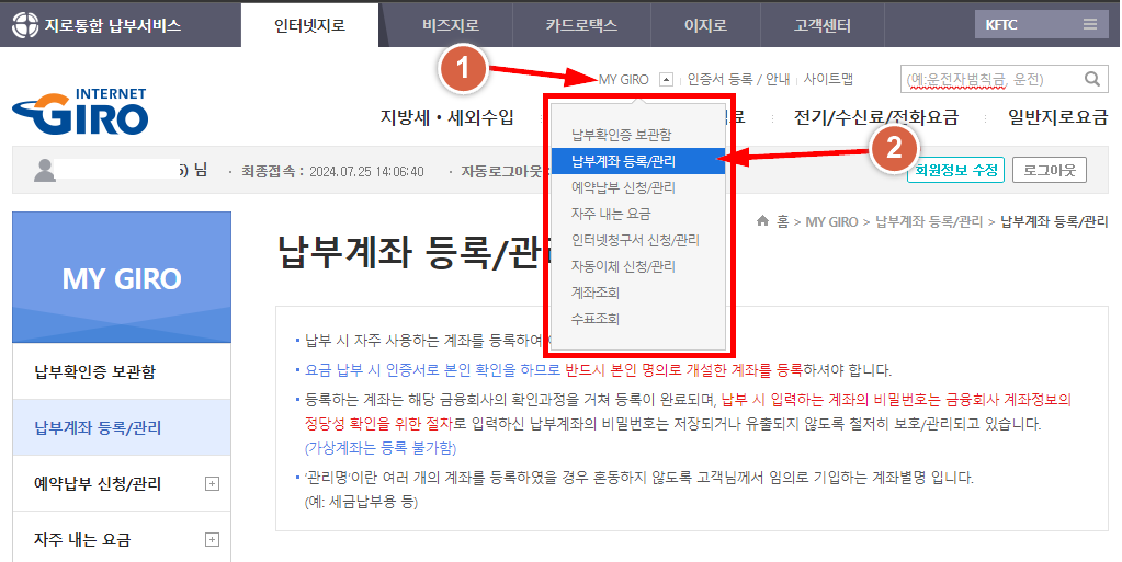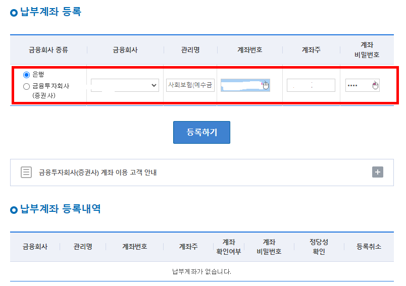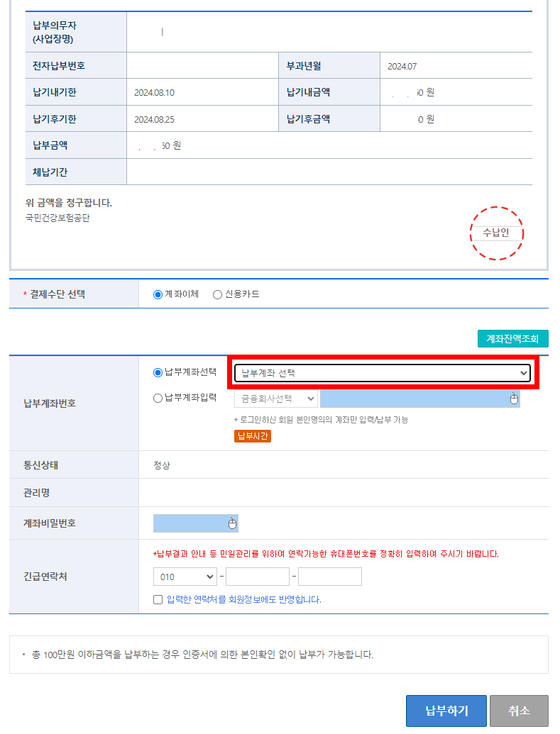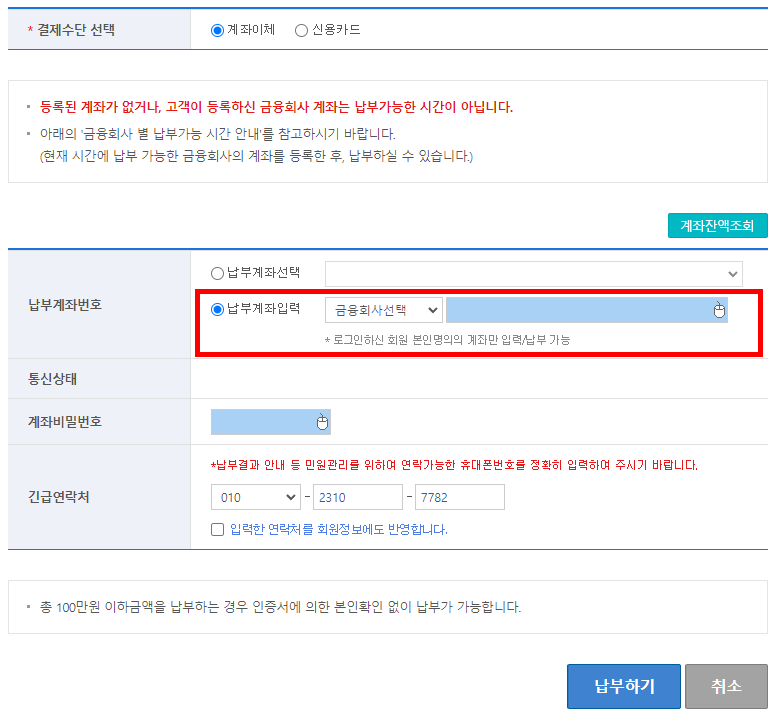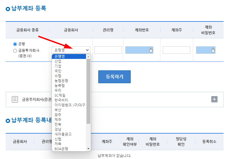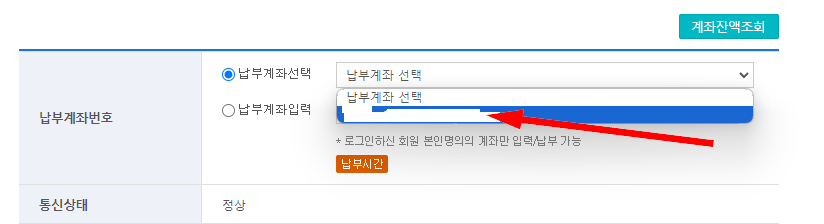 납부계좌를 선택합니다.