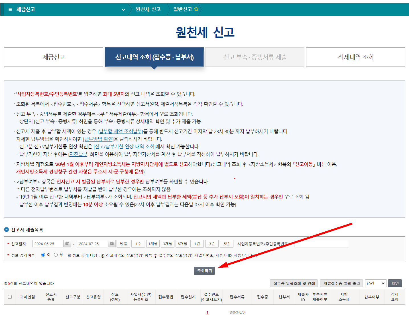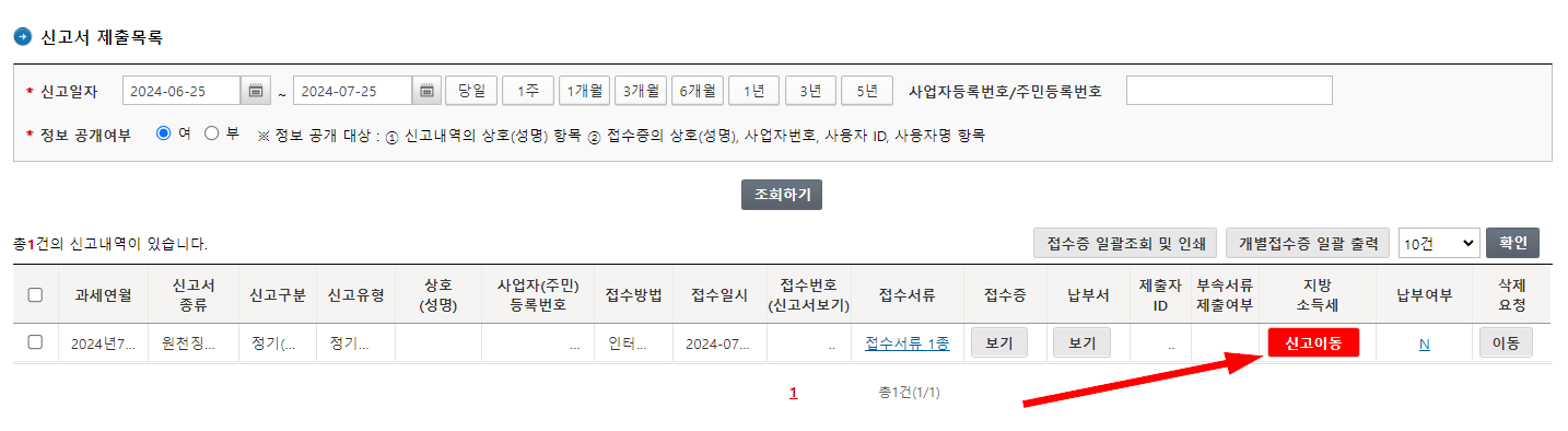 '신고서 제출목록'에서 지방소득세 신고가 가능한 웹페이지로 이동할 수 있어 편리합니다.