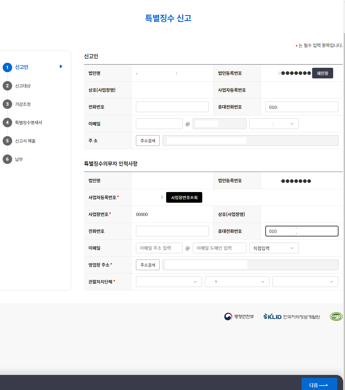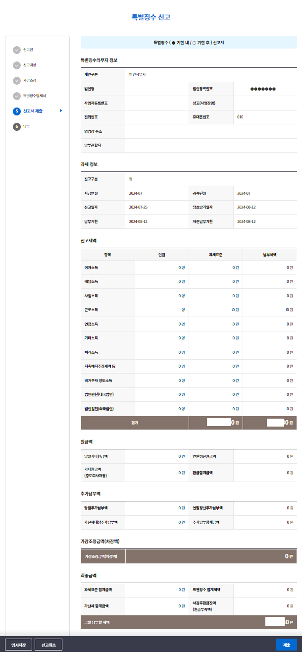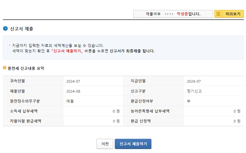 내용을 다시 검토 후 신고서 제출하기를 선택합니다.
