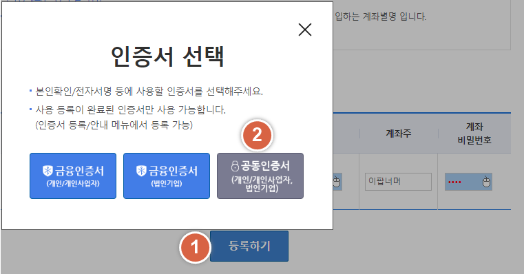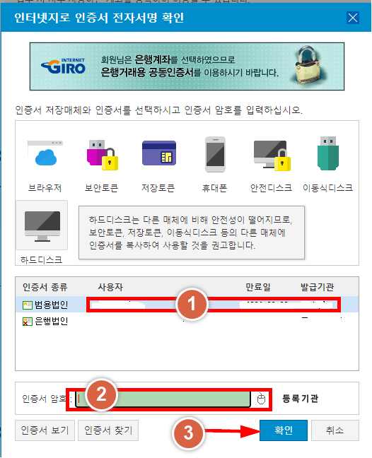 사용하는 인증서를 선택합니다.