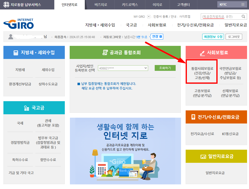 통합사회보험료 메뉴를 선택합니다.