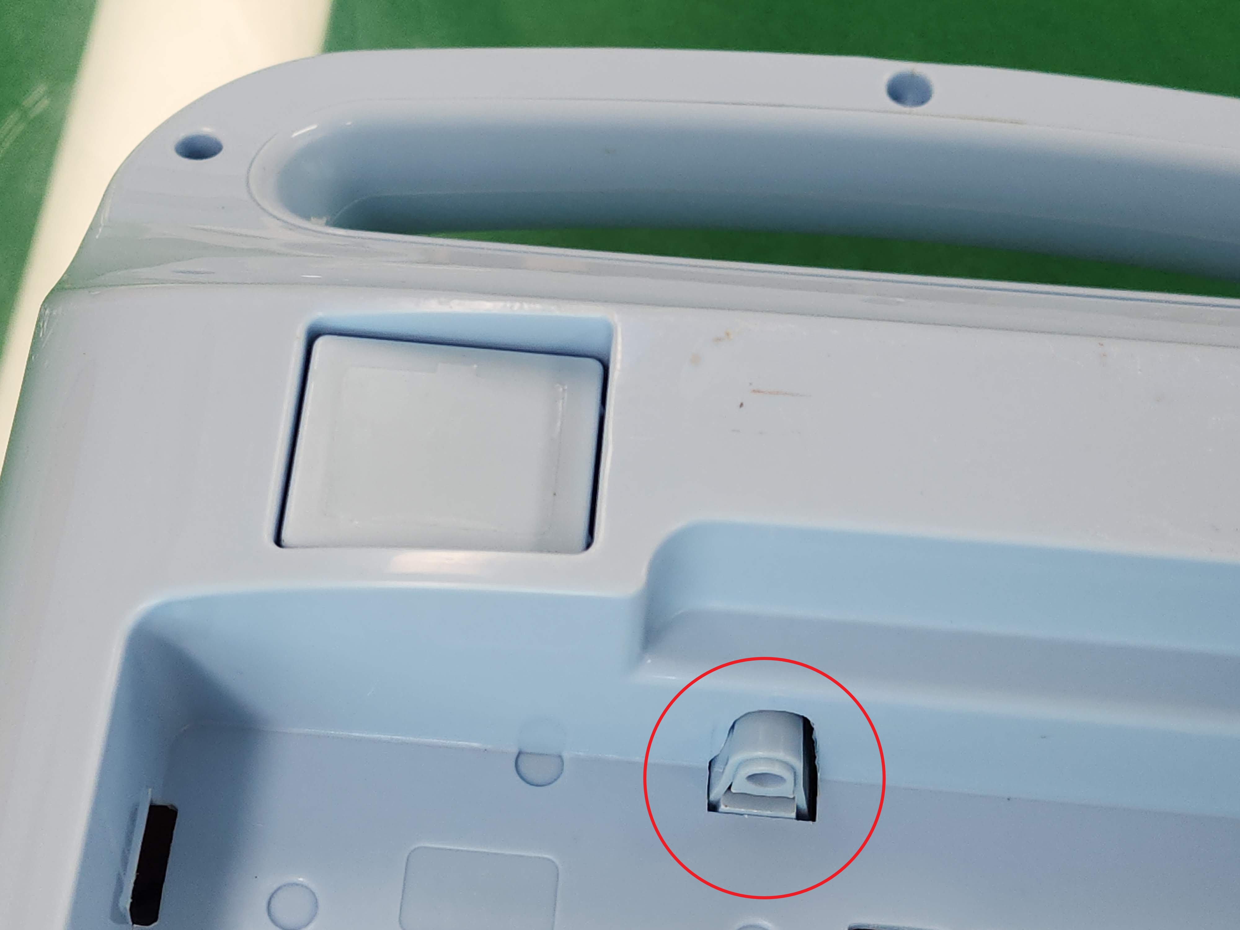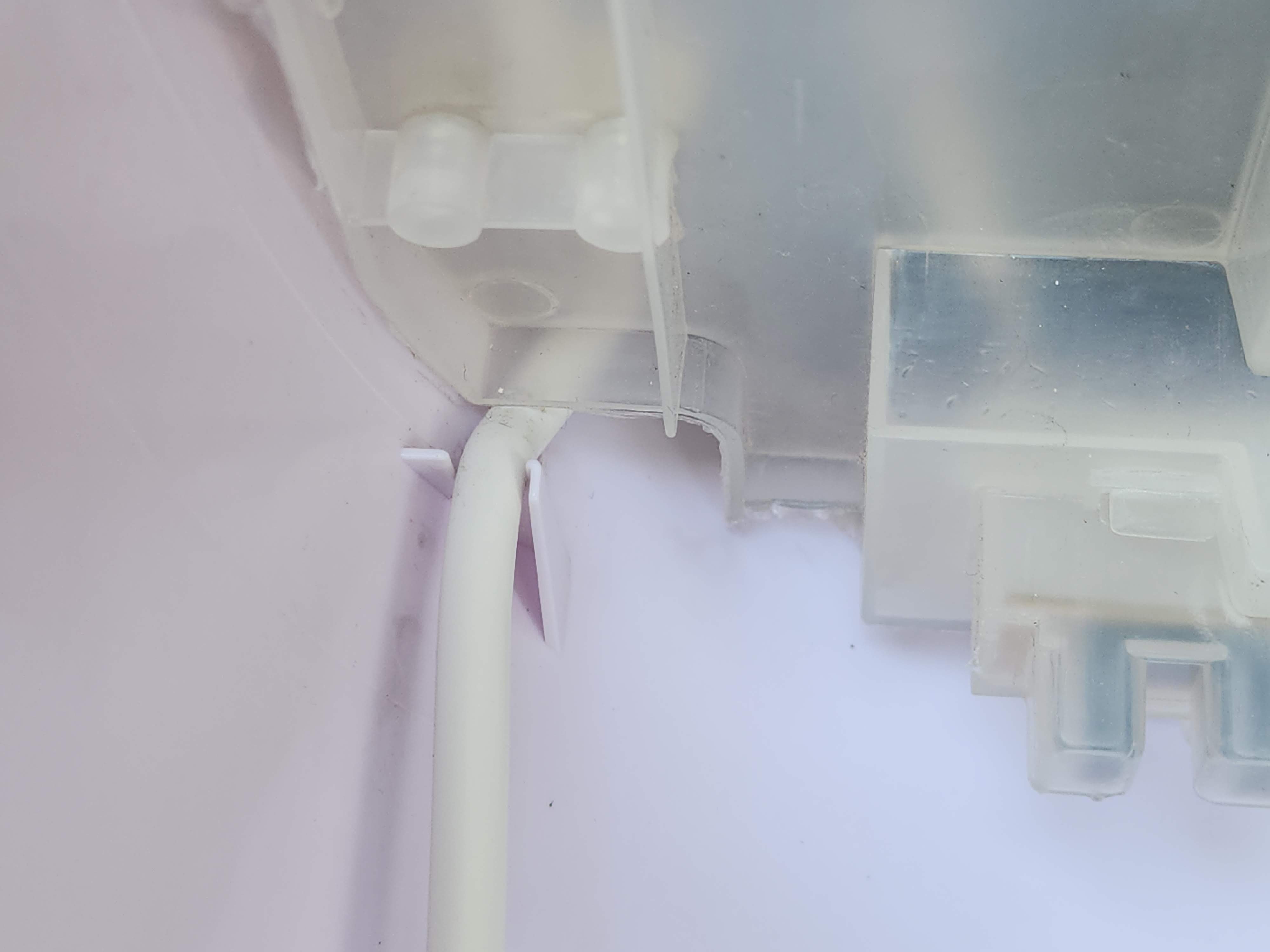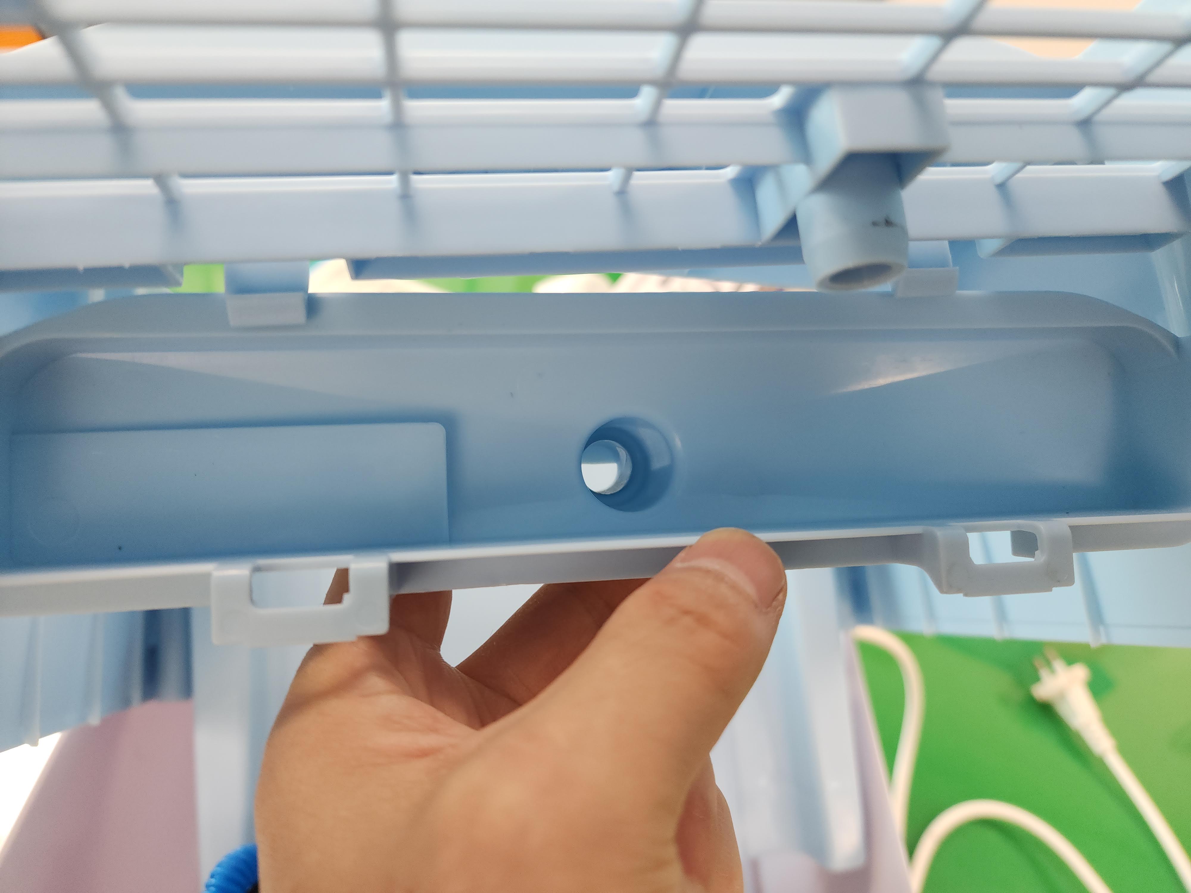 물통에 물이 일정 수준 이상 차오르면 냉풍기 전체의 작동을 멈추게 하는 센서를 고정하는 부분입니다.